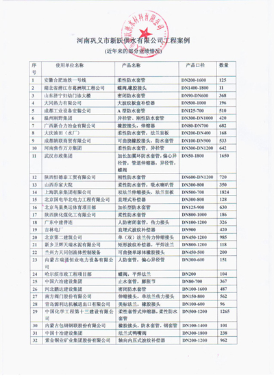 歡迎來到鞏義市新躍供水材料有限公司官方網(wǎng)站!您現(xiàn)在訪問的是:《公司部分業(yè)績》頁面,如需幫助請致電:13140066578 或 0371-64100988